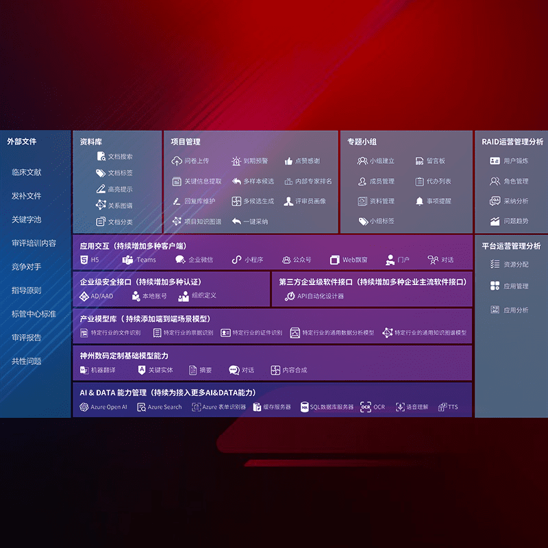 医疗器械产品上市前,,,,要熟悉严格与繁复评审标准,,,整理分析监管机构指导文件中的海量信息。。。。企业急需一个智能化解决方案,,提升知识管理效率,,,,提高评审通过率,,,,以提升其市场竞争力。。